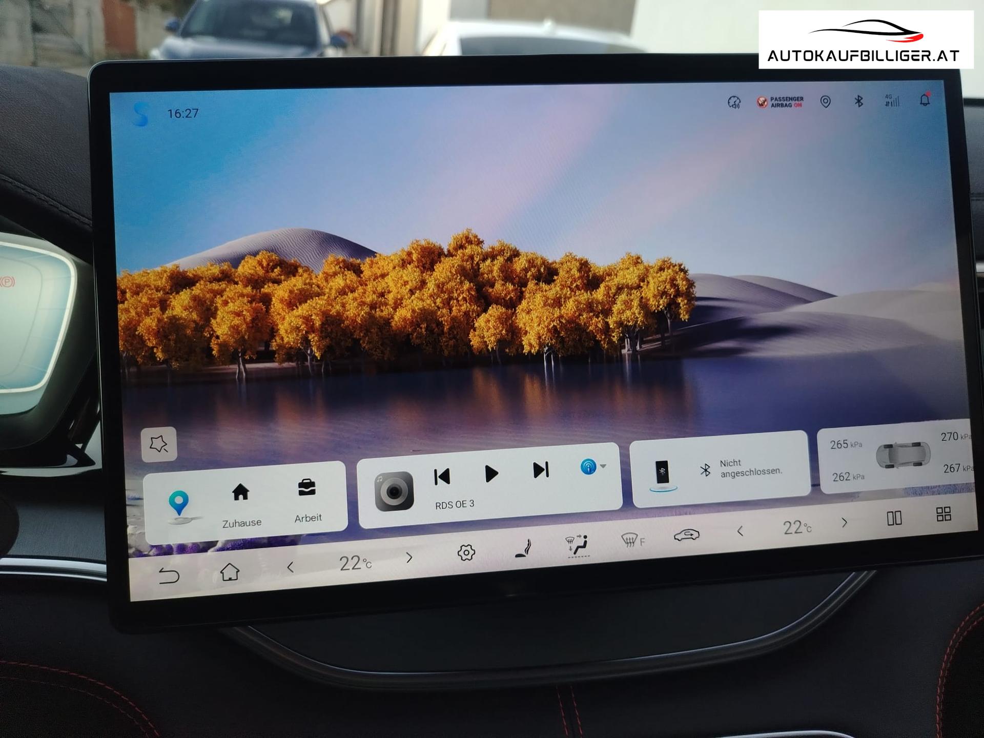 Sicherheit:FahrerairbagBeifahrerairbag, DeaktivierungsschalterMittlerer FrontairbagSeitenairbags vorneDach-/SchulterairbagsVordersitz-Sicherheitsgurte mit Gurtstraffer/-kraftbegrenzerÄußere Rücksitz-Sicherheitsgurte mit GurtstrafferMittlerer Rücksitz-Sicherheitsgurt mit GurtkraftbegrenzerISOFIX und i-Size ‒ Beifahrersitz und AußenrücksitzeReifendruck-Überwachungssystem (TPMS)Kindererkennung (CPD)DiebstahlschutzsystemVerriegelungsautomatikMechanische KindersicherungeCall-NotruffunktionFahrassistenten:Radar-Parksensoren vorn und hinten360°-KameraAbstandsregeltempomat (ACC) & Intelligenter Tempomat (ICC)Spurhalteassistent (LKA)Totwinkel-Assistent (BSD)Fahrermüdigkeitserkennung (DFM)Antriebsschlupfregelung (TCS)Spurwechselassistent (LCA)Elektronische Bremskraftverteilung (EBD)Intelligenter Tempobegrenzer (ISLC)Ausparkhilfe vorne (FCTA) und Ausparkbremse vorne (FCTB)Ausparkhilfe hinten (RCTA) und Ausparkbremse hinten (RCTB)Notfall-Spurhalteassistent (ELKA)Kollisionsvorwarnfunktion (PCW)Frontalkollisionswarnsystem (FCW)Heckkollisionswarnsystem (RCW)Spurwarnfunktion (LDW)Türwarnfunktion (DOW)Spurhalteassistent (LDA)Elektrische Feststellbremse (EPB)Comfort Stop (CST) (Bremskomfortanpassung)Spurhalteassistent (LDP)Bergabfahrhilfe (HDC)BremshalteautomatikNotbremsautomatik (AEB)Verkehrszeichenerkennung (TSR)Hydraulischer Bremsassistent (HBA)Hydraulischer Bremskraftverstärker (HBB)Kontrollierte Verzögerung mit Feststellbremse (CDP)Fahrdynamikregelung (VDC)Berganfahrhilfe (HHC)Überschlag-Schutzsystem (RMI)Bremsenübersteuerung (BOS)Komfort und Effizienz:Externgeräte-Stromversorgung (V2L)Fahrmodi: Eco, Normal, Sport, Snow, Sand, Muddy2 x Smartkey-SchlüsselKeyless Entry & Keyless Start (schlüsselloser Zugang/Start)11kW-Bordladegerät (OBC)Österreich-Paket:Velour-FussmattenV2L AdapterUnterbodenschutz