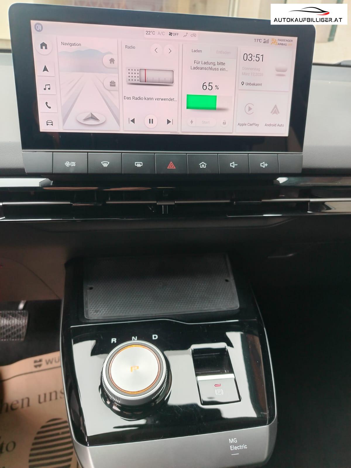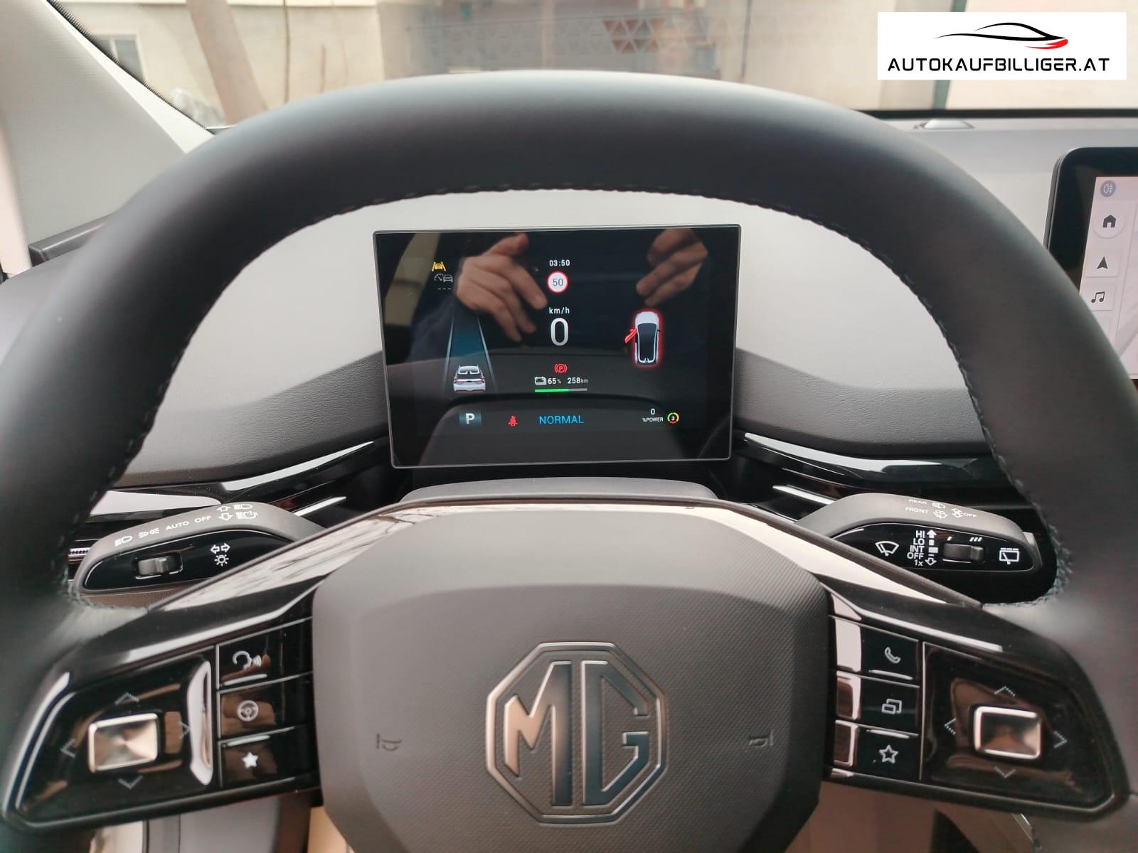 Ausstattung:V2LOne pedal drivingEPBAuto HoldISOFIXTPMSFrontairbags, Seitenairbags, KopfairbagsDeaktivierungsschalter für BeifahrerseitenairbagAdaptive Geschwindigkeitsregelung (ACC)Intelligente Fernlichtsteuerung (IHC)Geschwindigkeitsassistenzsystem (SAS)Automatische Notbremsung (AEB)Stauassistent (TJA)Warnung vor unsicherem Fahren (UDW)Spurverlassenswarnung (LDW)Spurhalteassistent (LKA)Notfall-Spurhalteassistent (ELK)Spurwechselassistent (LCA)Überwachung des toten Winkels (BSM)Querverkehrswarnung hinten (RCTA)Heckkollisionswarnung (RCW)Tür-Offen-Warnung (DOW)LED-TagfahrlichtLED-ScheinwerferVertikale LED-Anzeigen vorneLED-Rücklicht über die gesamte Breite mit dekorativer BeleuchtungNebelschlussleuchteDämmerungssensorParksensor hinten360° KameraHochmontierter DoppelspoilerRahmenlose ScheibenwischerGetönte ScheibenAußenspiegel beheizbar, elektrisch verstellbar und anklappbar12V-Anschluss vorneAutomatisch abblendender InnenspiegelWärmepumpeKlimaautomatikEl. Fensterheber vorne und hintenMultifunktionslederlenkrad, beheizbar, 4fach verstellbarInfotainment: Digitales Kombiinstrument 7" - Radio - DAB+ - 6 Lautsprecher - 3 USB-Anschlüsse (vorne: 1x USB A + 1x USB C / hinten: 1x USB A) - 2 Mikrofone - BluetoothAndroid Auto / Apple CarPlayKabellose Handy-LadefunktioniSMART 10,25"SprachsteuerungEchtzeit-VerkehrsinformationenNavigationWLAN-HotspotTouchscreenMG iSMARTKeyless entry and startFahrersitz 6-fach elektrisch verstellbarBeifahrersitz 4-fach verstellbarSitzheizung vorn40/60 umklappbare Rücksitze18-Zoll-Leichtmetallfelgen mit Radkappe - 235/45 R18ReifenreparatursetZentralverriegelungFussmatten